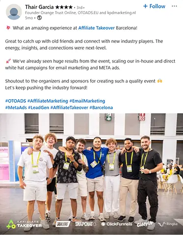 You’ll get the networking opportunities you came for. Of course there are heavy-hitter speakers dropping serious value on stage. And yes, there’s time to let your hair down — this is Miami, after all. But (and it’s a big but), this is white-hat only. No crypto cowboys. No sketchy lead gen bros. No wasting time trying to figure out who's legit. Everyone here is the real deal, and they’re here for the right reasons.